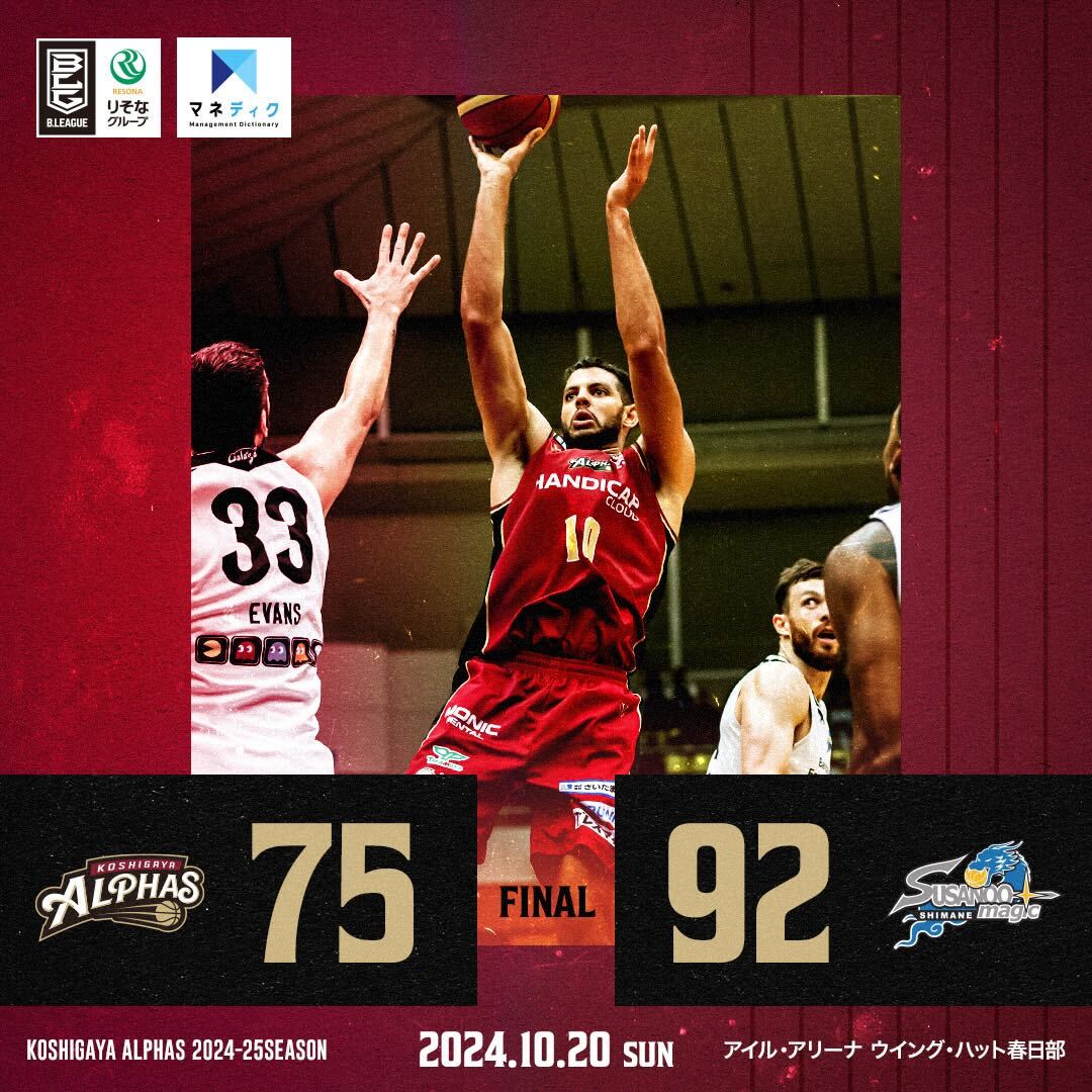 【試合レポート】第3節 GAME2 2024年10月20日(日) vs.島根スサノオマジック〔HOME GAME〕